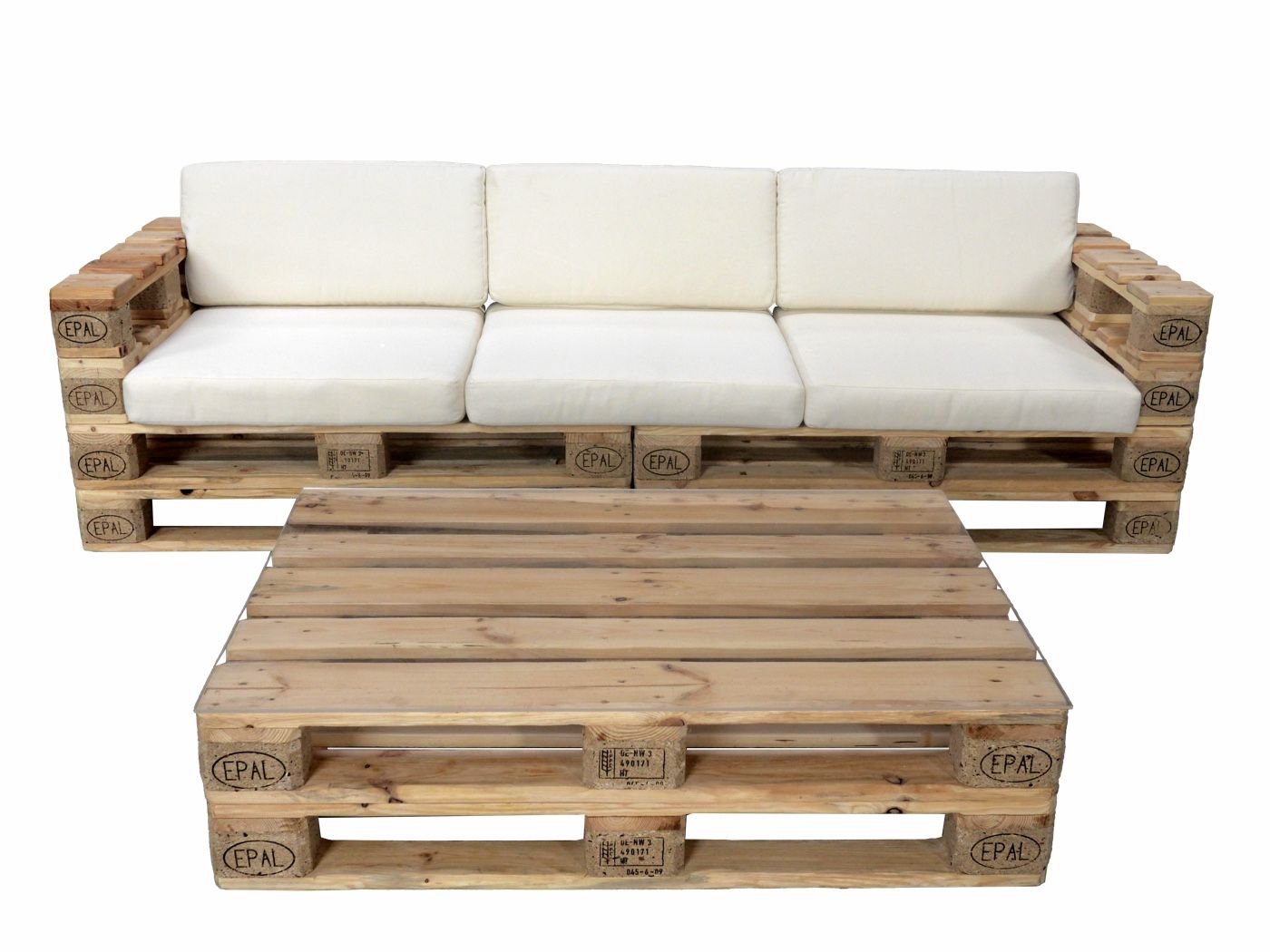 Lounge bestehend aus Palettenkonstruktion mit passender Sitztauflage